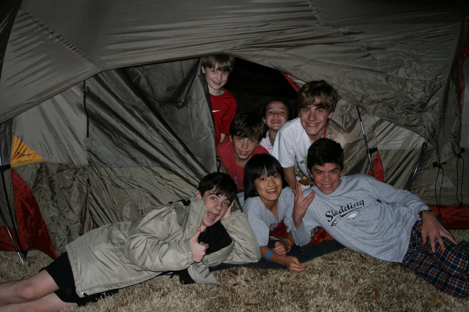 Craig decided it would be really fun to set up the tents in the backyard, invite some pals over, and camp out. And it was really fun! This is a great time of year because it's not too cool and because the snakes aren't out yet. (my #1 reason).